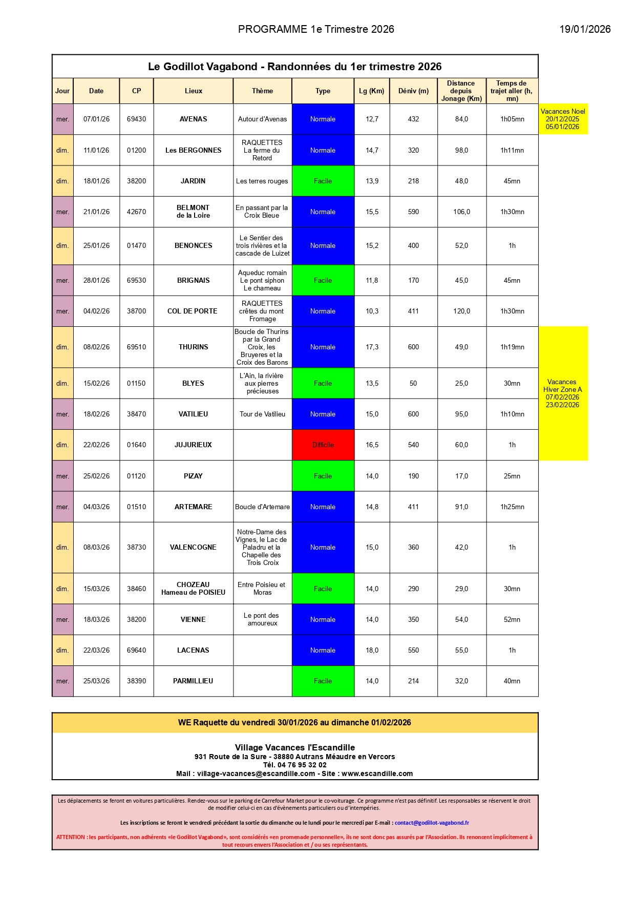 Programme des randonnées Programme 2026-T1 à télécharger Programme 2025-T4 à télécharger Programme 2025-T3 à télécharger Programme 2025-T2 à télécharger